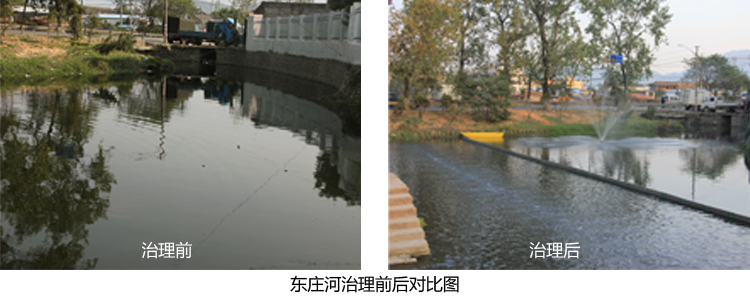 針對該河情況,我司組合了生態懸浮床系統、人工浮島+植物、富氧曝氣、IPF菌劑、生物膜填料系統等生態工藝措施。